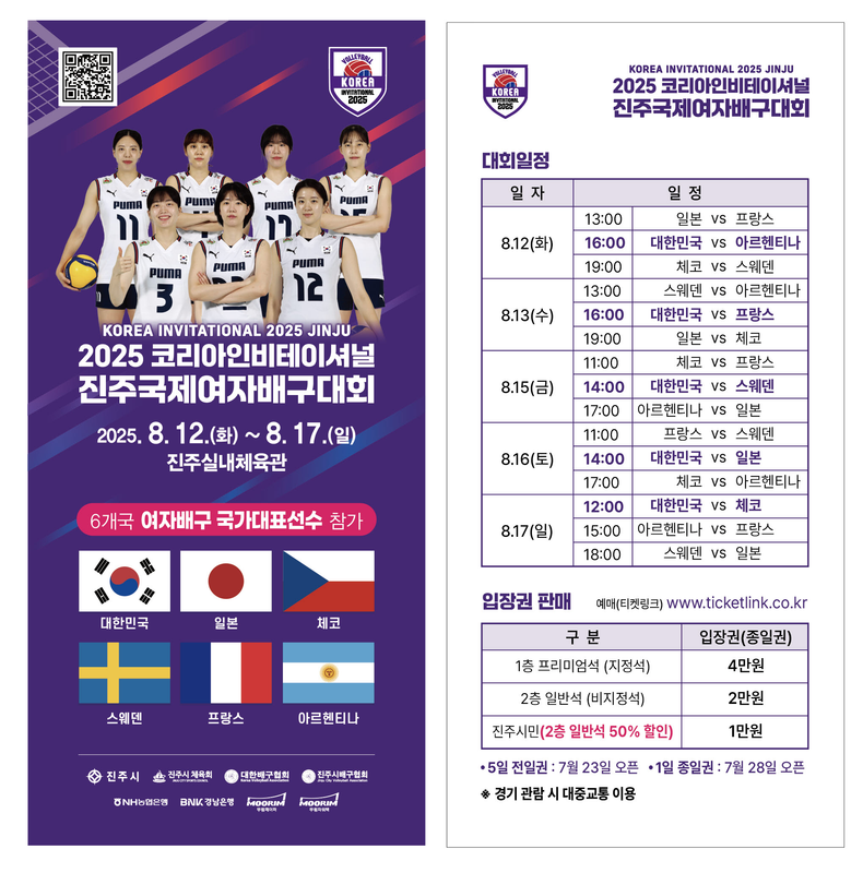 1. 2025년 8월 진주실내체육관에서 2025 코리아인비테이셔널 진주국제여자배구대회를 개최합니다.